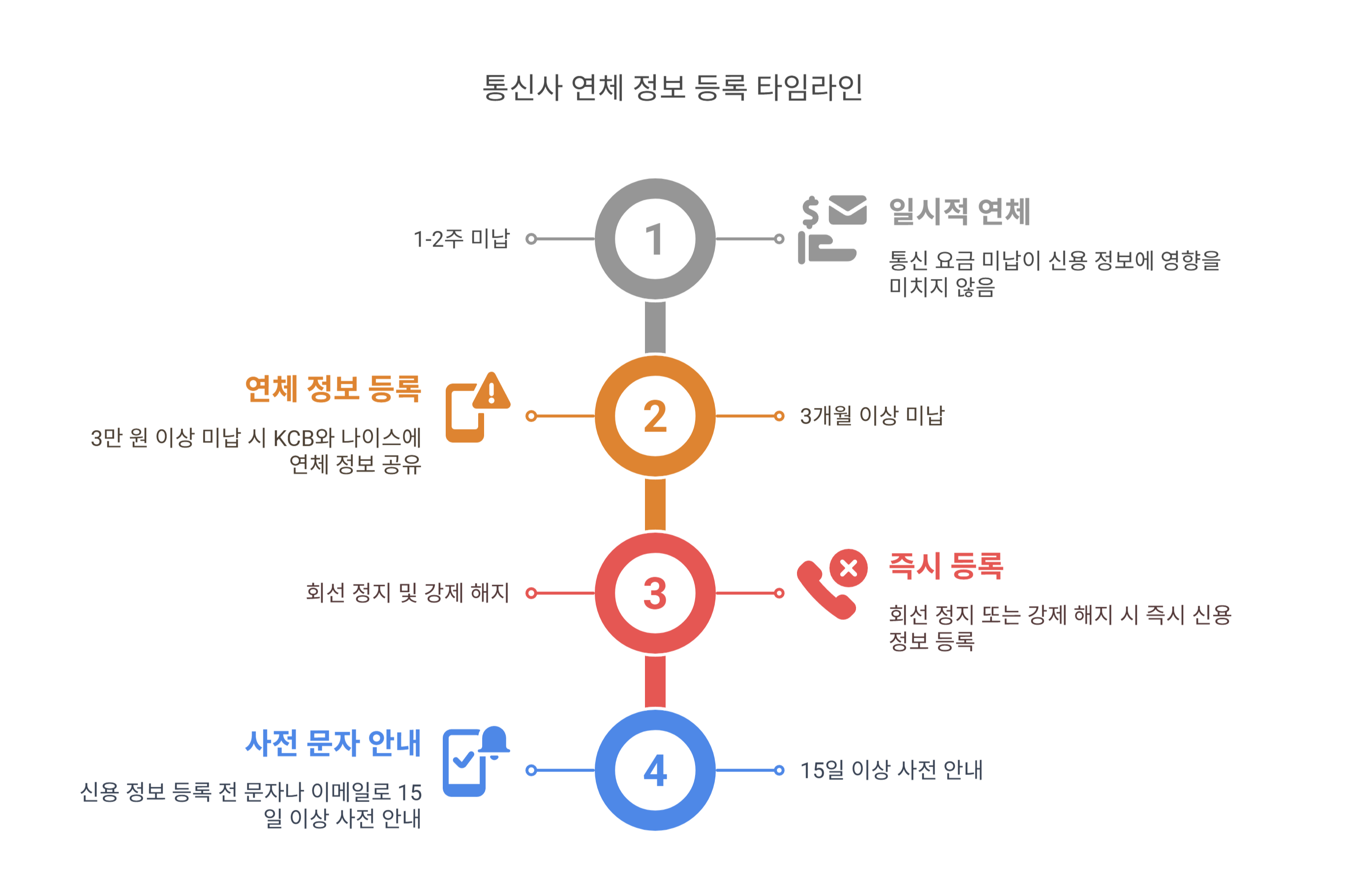 하지만 미납 상태가 일정 기간 지속되면 통신사에서 연체 사실을 등록하게 되며, 이때부터는 공식 신용정보로 분류돼요.
