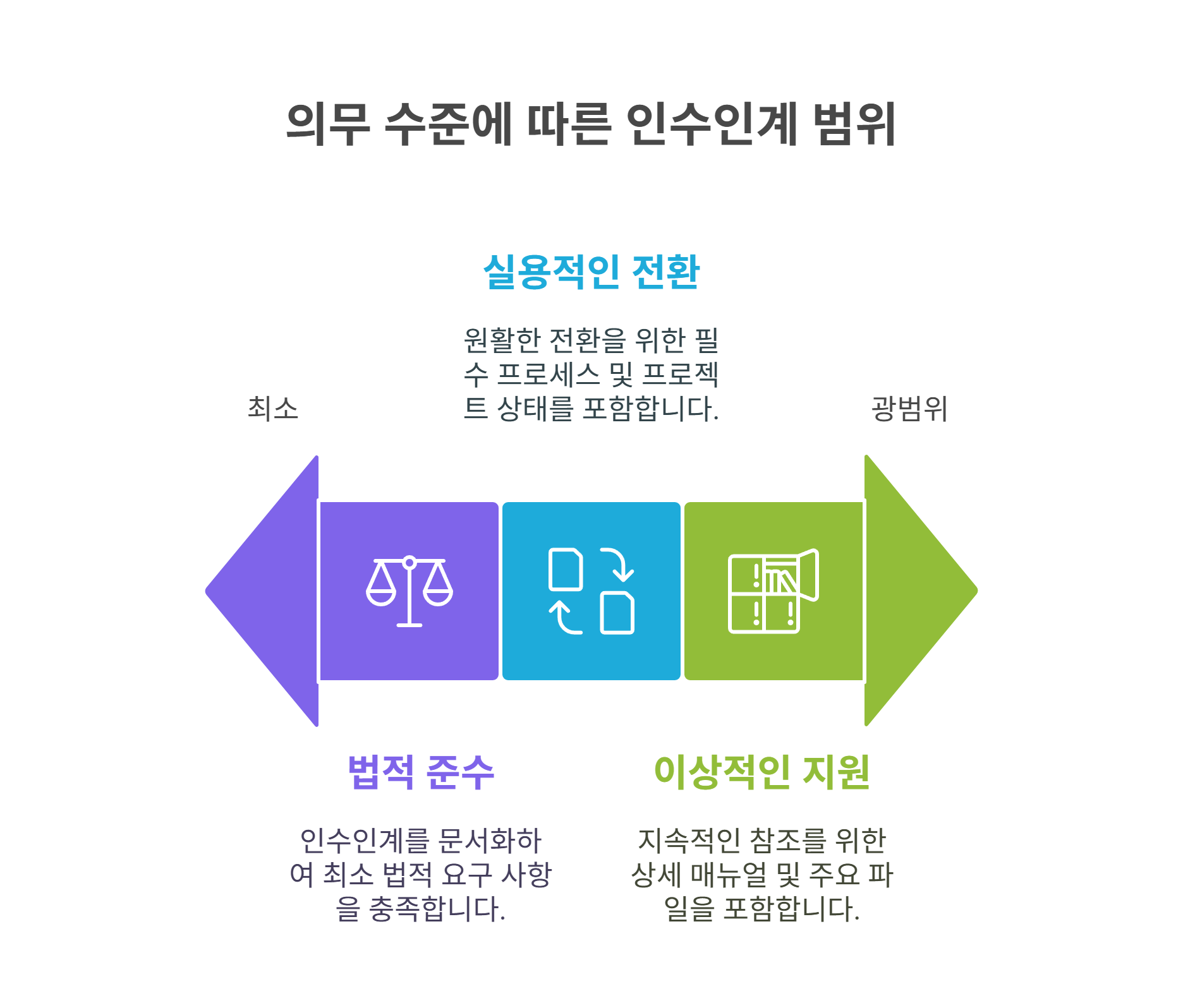 인수인계 자료를 문서화해서 메일이나 사내 시스템에 남기면 의무 이행은 충분하다고 볼 수 있어요.