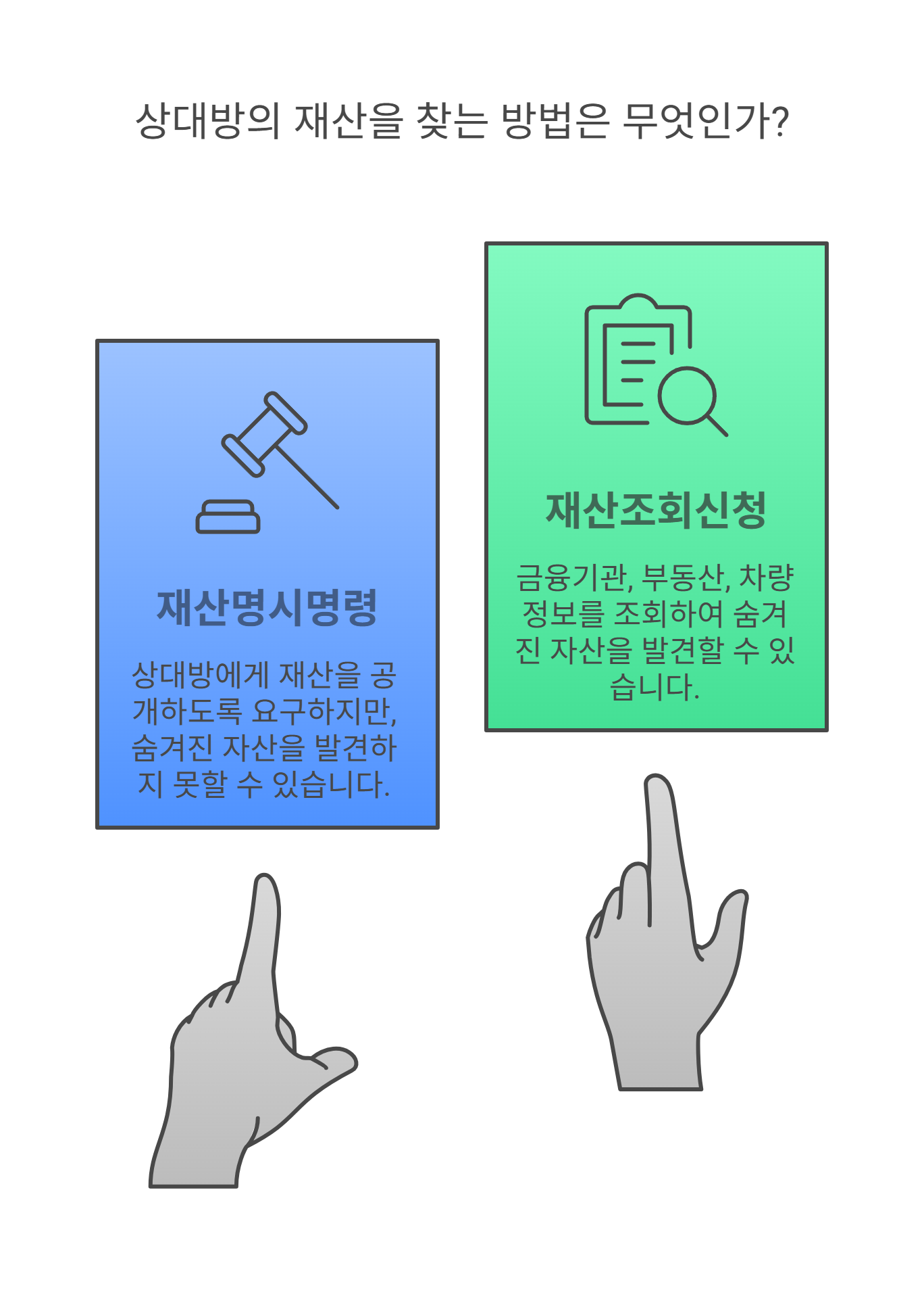 판결을 받았더라도 상대방이 자산을 어디에 갖고 있는지 몰라 압류를 못 한다면 강제집행이 어렵습니다.