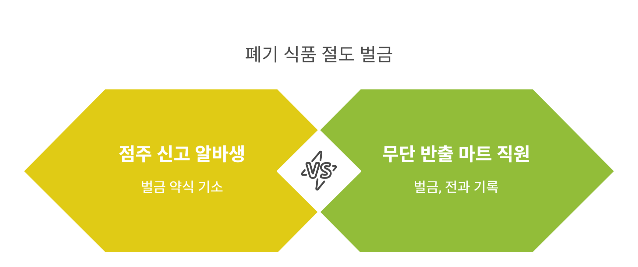 편의점이나 마트에서 유통기한이 지난 폐기 식품을 섭취한 아르바이트생이 실제로 벌금형을 선고받은 사례가 다수 존재합니다.