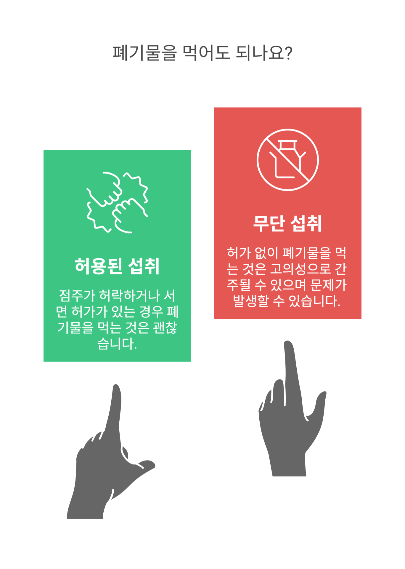 그럼, 어떤 편의점은 폐기물 섭취를 허용한다는 얘기도 있는데 사실일까요? 다음에서 확인해보세요!