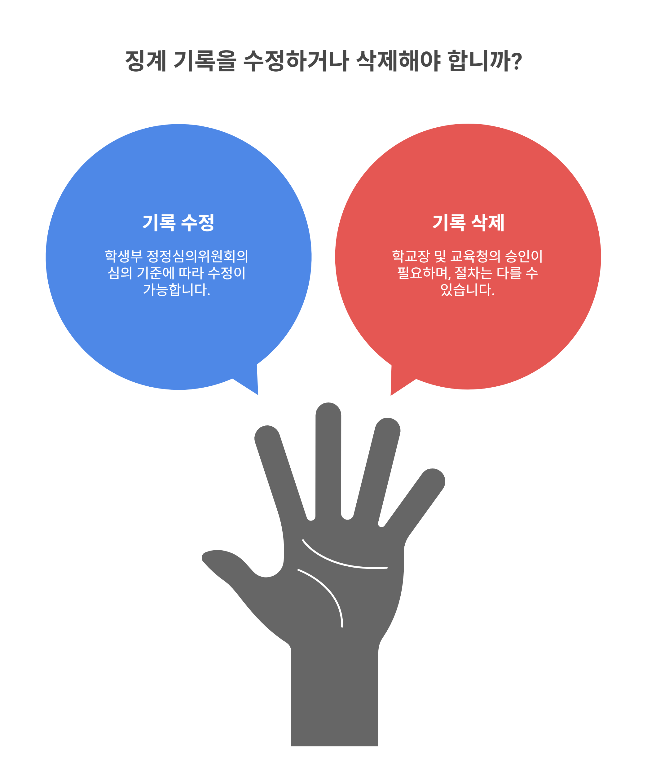 징계기록의 정정, 삭제는 학교장 및 교육청의 승인을 거쳐야 하며, 그 절차는 각 학교와 교육청에 따라 다를 수 있습니다.
