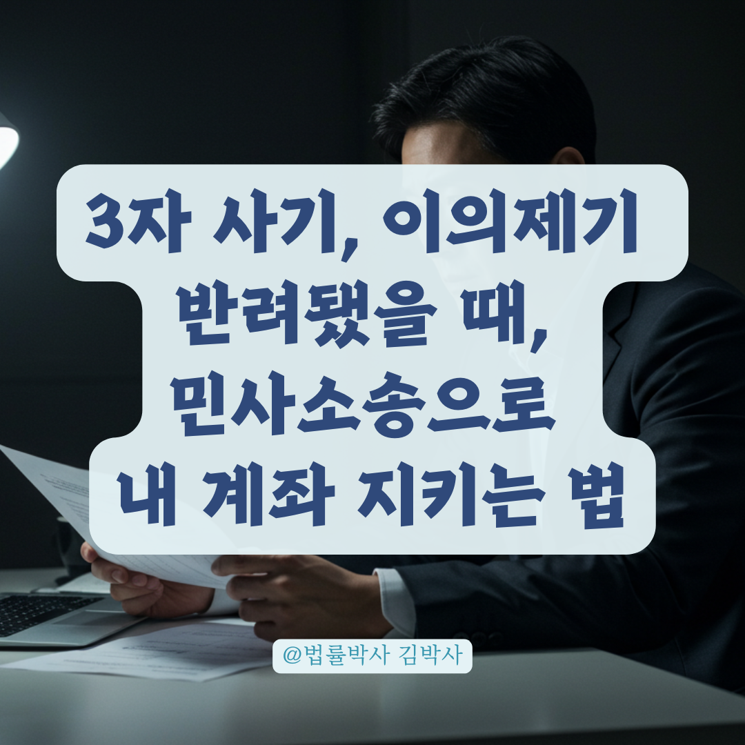Tags: 민사소송, 계좌지급정지, 이의제기, 3자사기, 보이스피싱, 부당이득반환청구, 금융사기, 피해구제, 지급정지해제, 소송절차